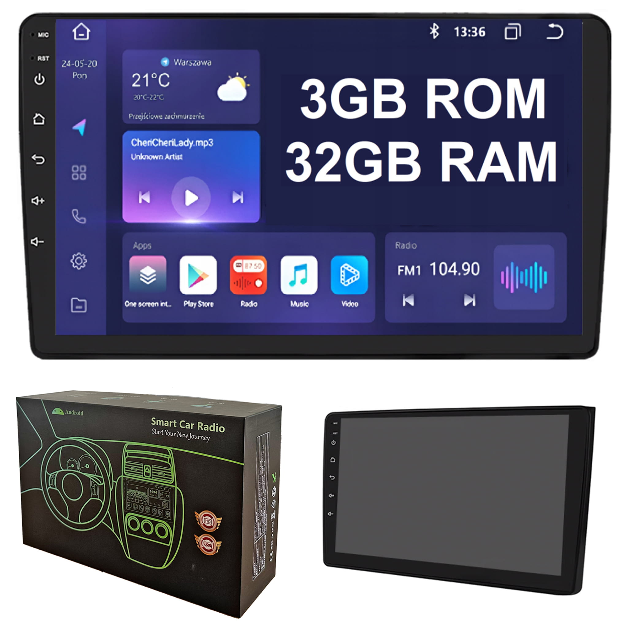 Multimedialne radio Android z ekranem dotykowym, nawigacją i możliwością instalacji dowolnej aplikacji (Google Maps, Spotify, Youtube i inne)