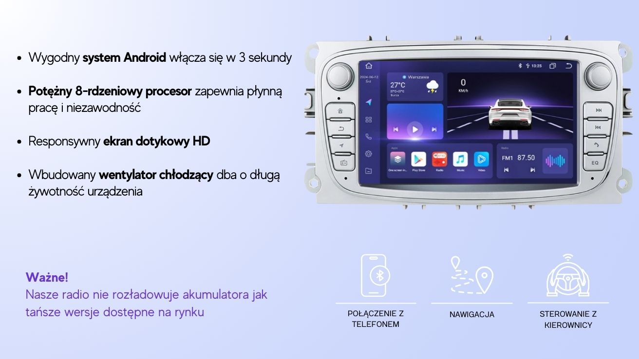 RADIO NAWIGACJA ANDROID 7’ | FORD | SREBRNY
