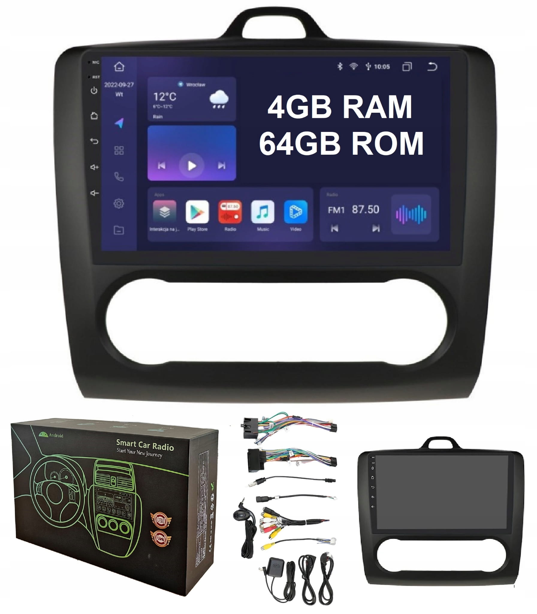 RADIO NAWIGACJA ANDROID 9’ | FORD FOCUS MK2 | CZARNY
