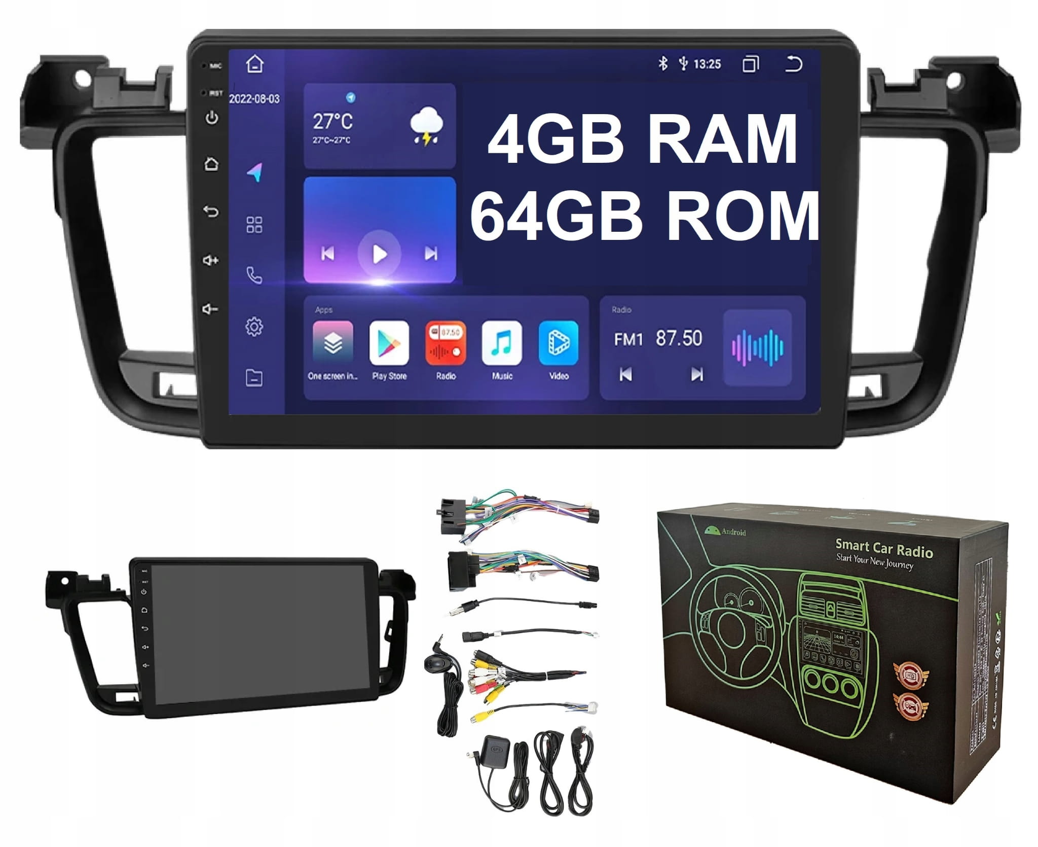 Multimedialne radio Android z ekranem dotykowym, nawigacją i możliwością instalacji dowolnej aplikacji (Google Maps, Spotify, Youtube i inne) Peugeot 508 (2011-2018)