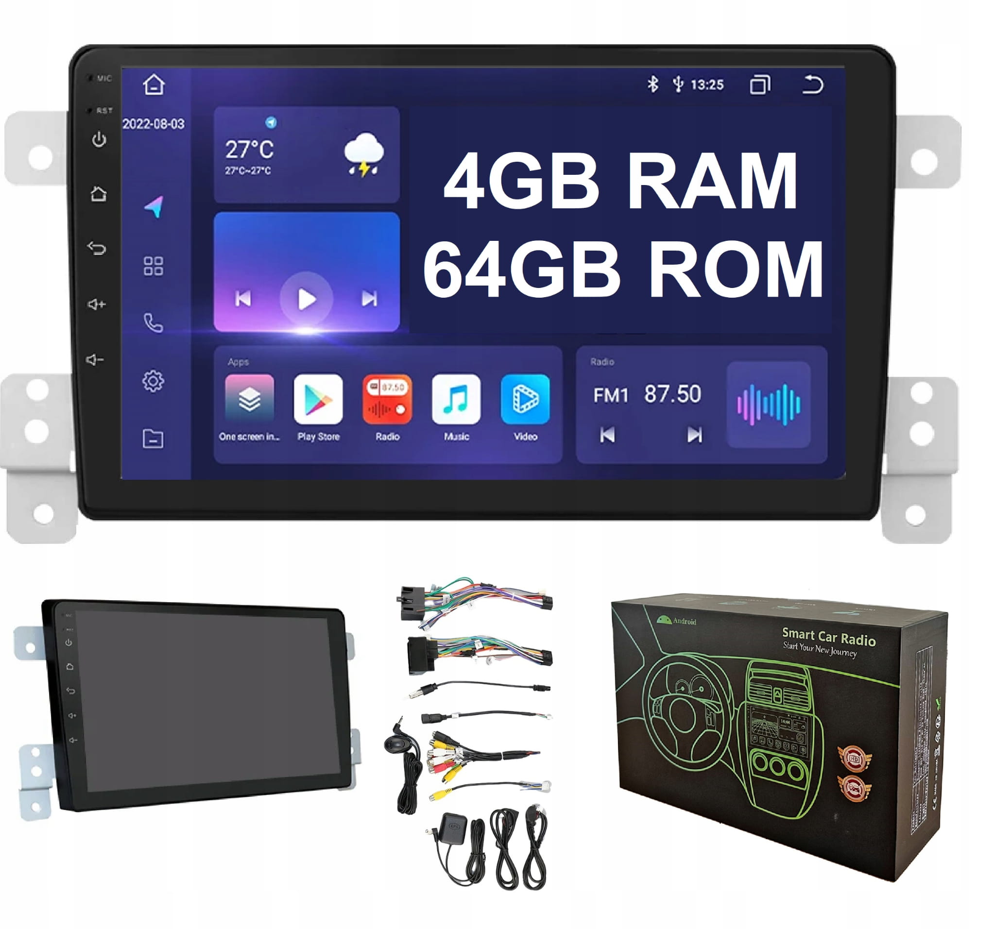 Multimedialne radio Android z ekranem dotykowym, nawigacją i możliwością instalacji dowolnej aplikacji (Google Maps, Spotify, Youtube i inne)